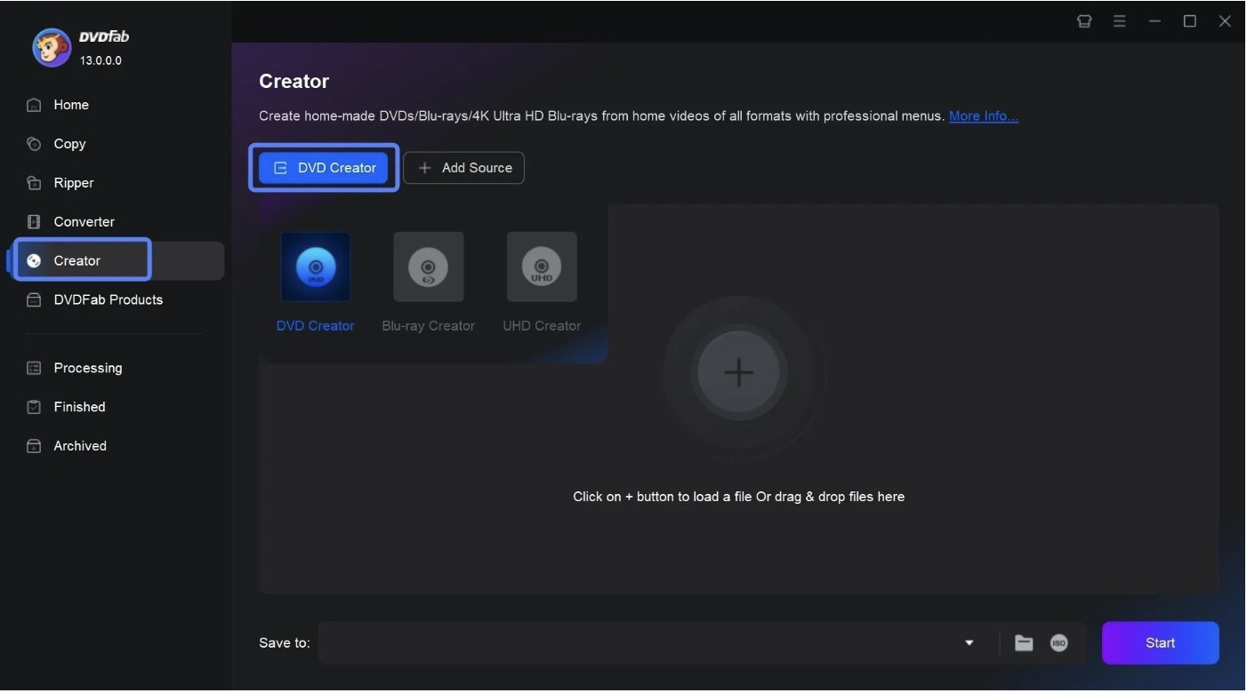 Step 1: After launching the DVDFab DVD Creator on your Mac or Windows, double-click on DVDFab's desktop icon to open it. Move to the left-side module panel to select the Creator Module > locate and select the DVD Creator Mode.